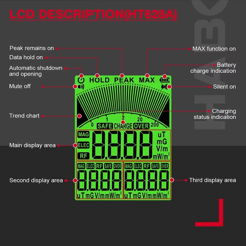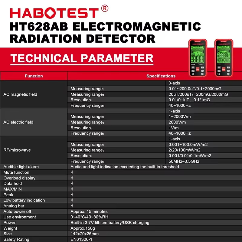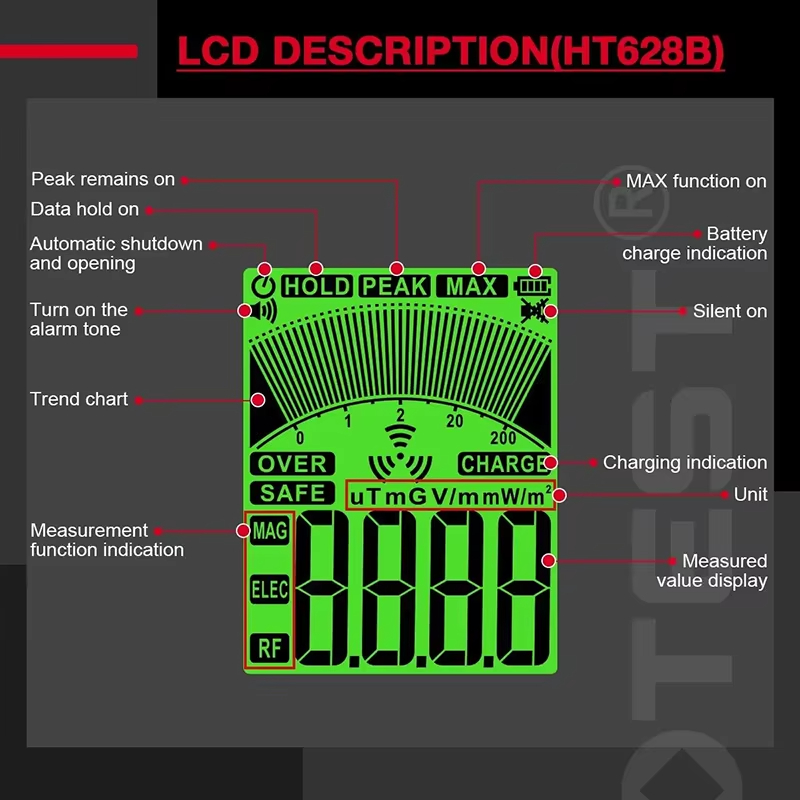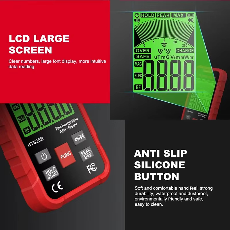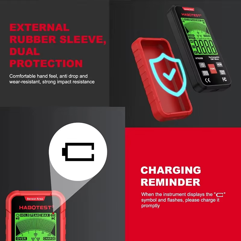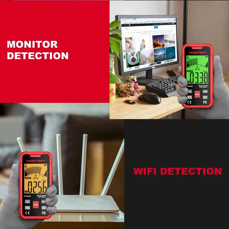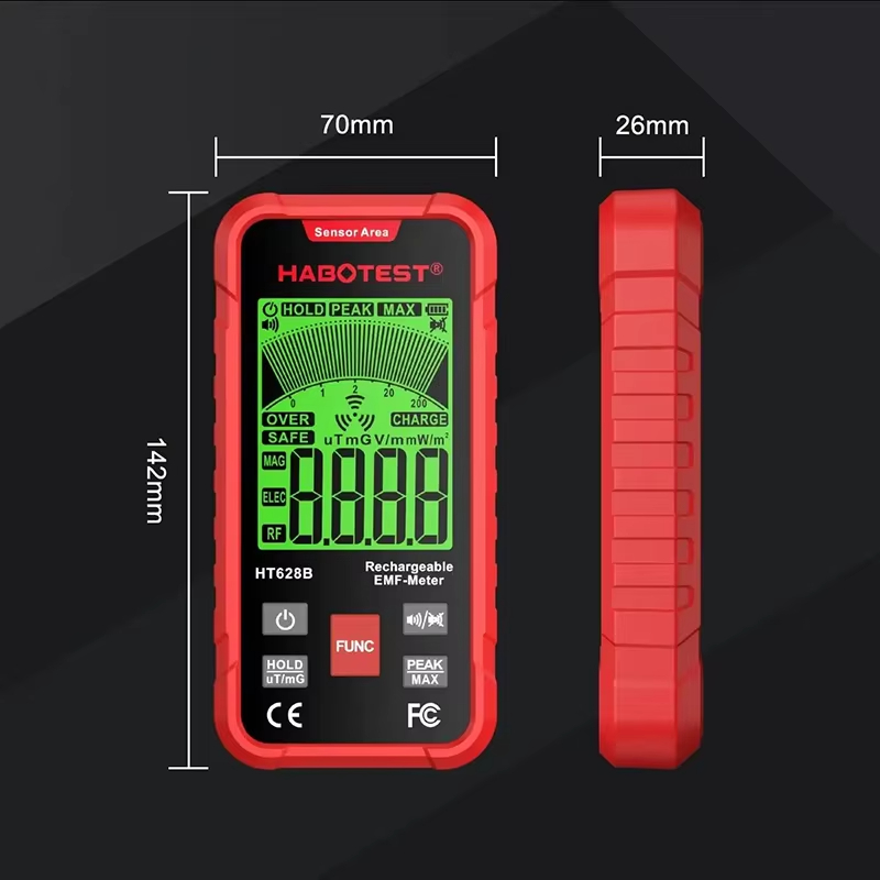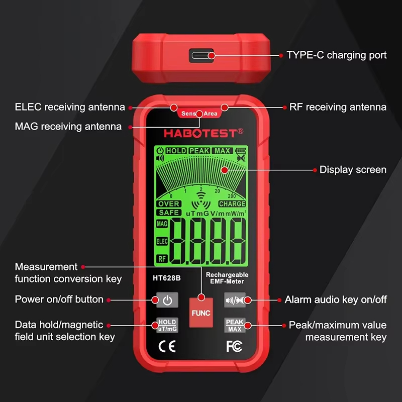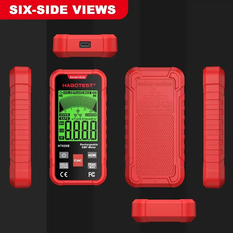 HABOTEST HT628B Electromagnetic Radiation Tester Portable Handheld Portable Radio Frequency Field Tester USB Charge EMF Meter