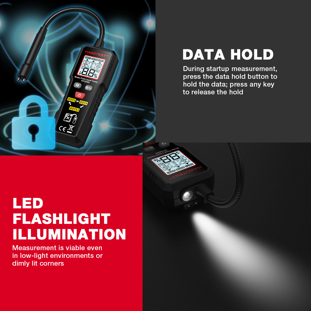 HT5009 Digital Auto Brake Liquid Oil Detector High Precision Automobile Brake Fluid Content Detector for DOT3/DOT4/DOT5.1 *