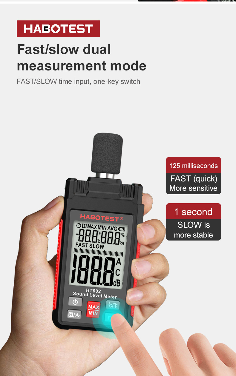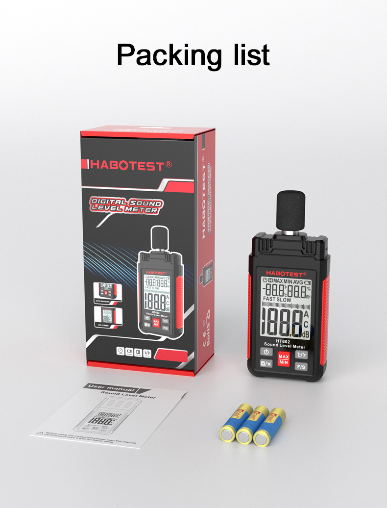HT602A/B High Accuracy Digital Handheld Sound Level Meter (DB) 30-130dB Range Mini Design for Noise Audio