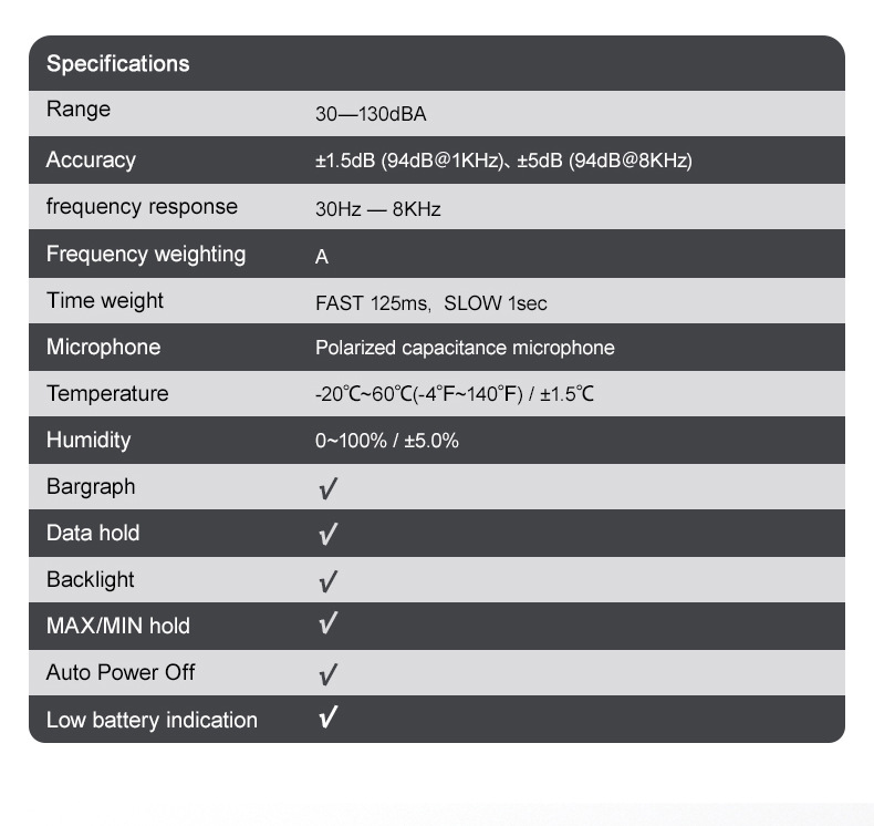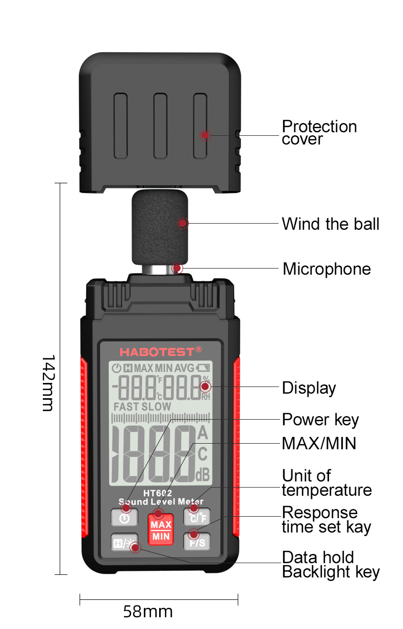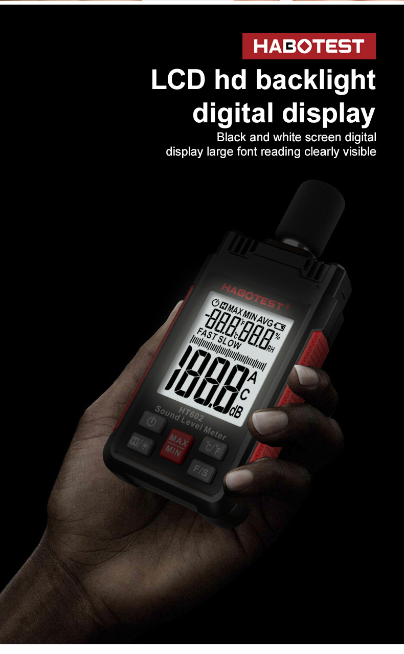 • HT602A/B High Accuracy Digital Handheld Sound Level Meter (DB) 30-130dB Range Mini Design for Noise Audio