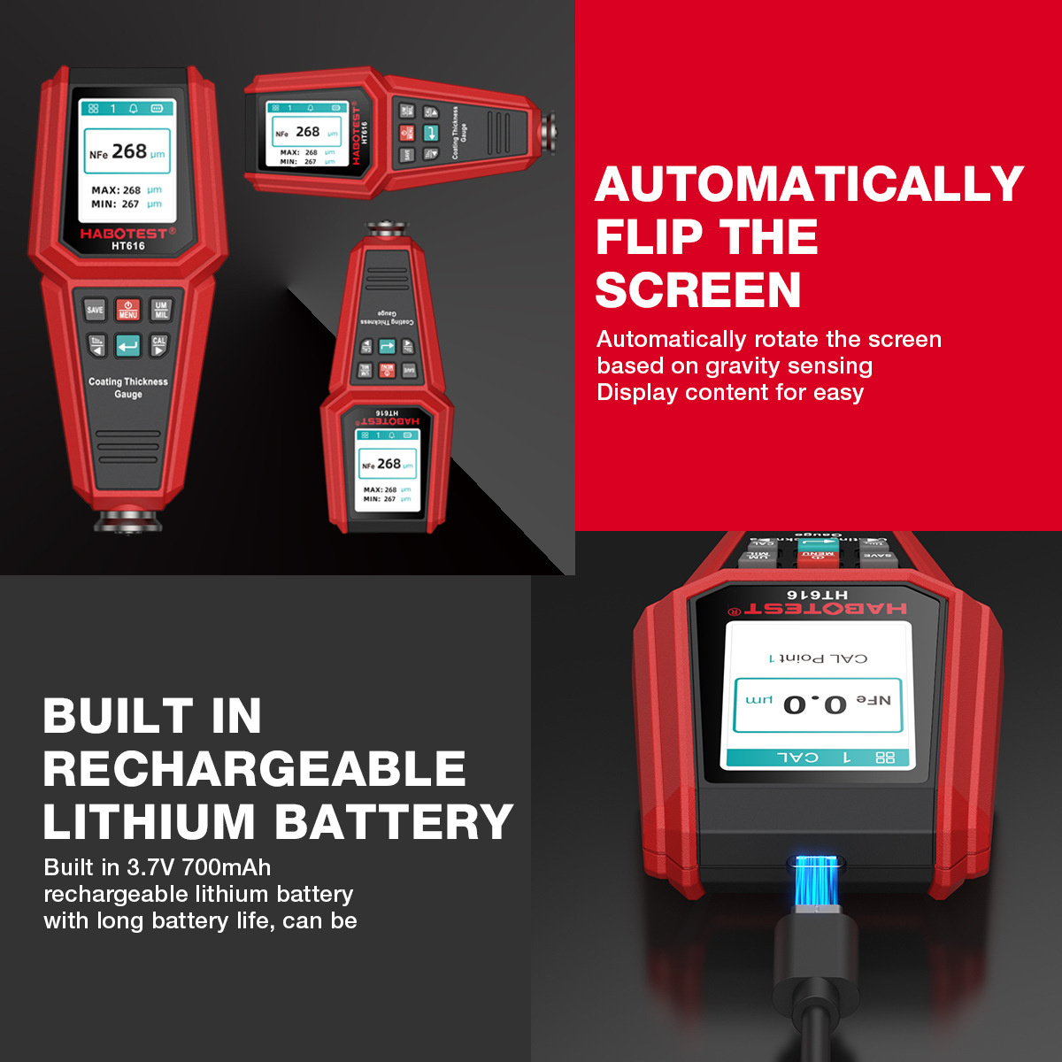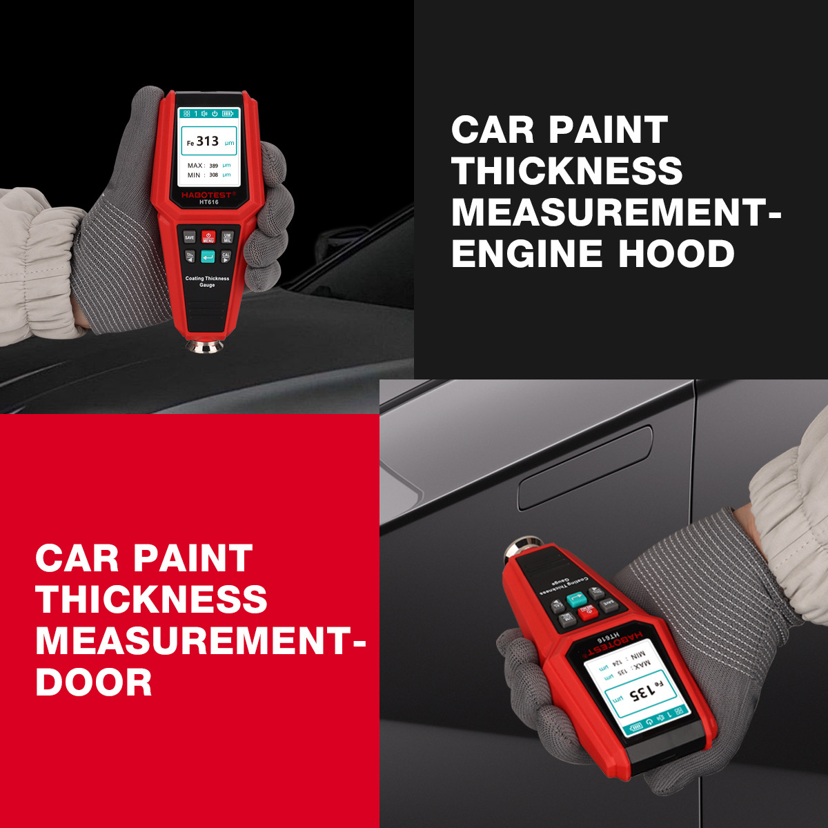 HT616 High Precision Coating Thickness Gauge Car Paint Detector and Film Meter with
