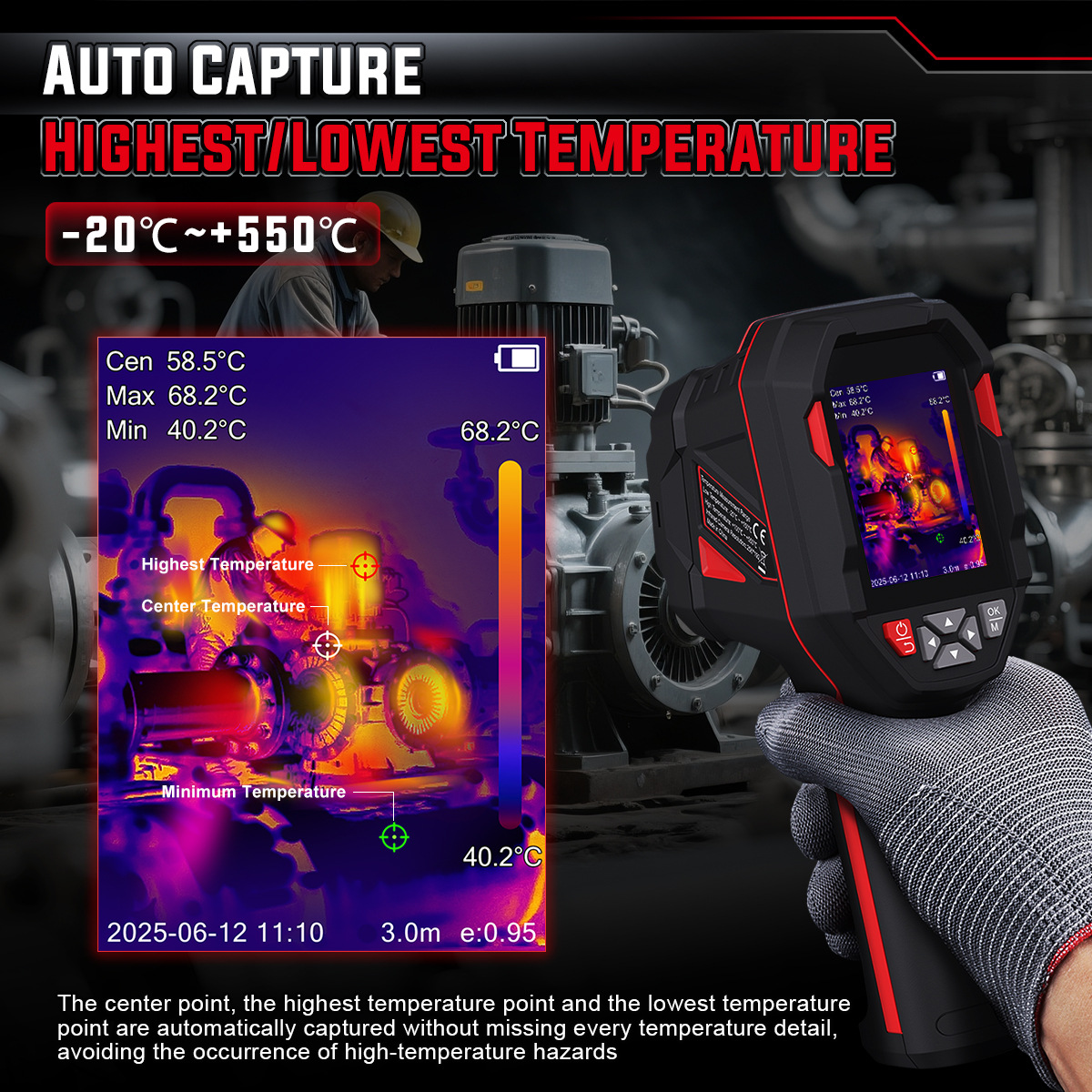 HT821CS -20°C~550°C With 10LANGUAGES TO CHOOSEFROM High-Resolution Handheld Precision Infrared Thermal Imager Power Failure Floor Heating Leak Detector