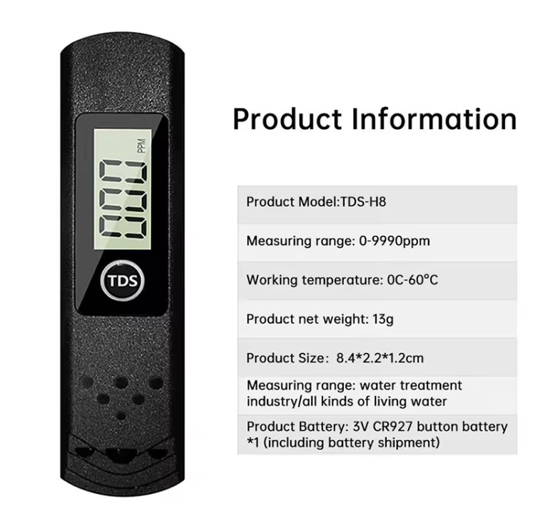 • TDS-H8 Digital Water Quality Tester With 0-9990 PPM, Ideal Water Test Meter for Aquariums, Pools, Drinking Water