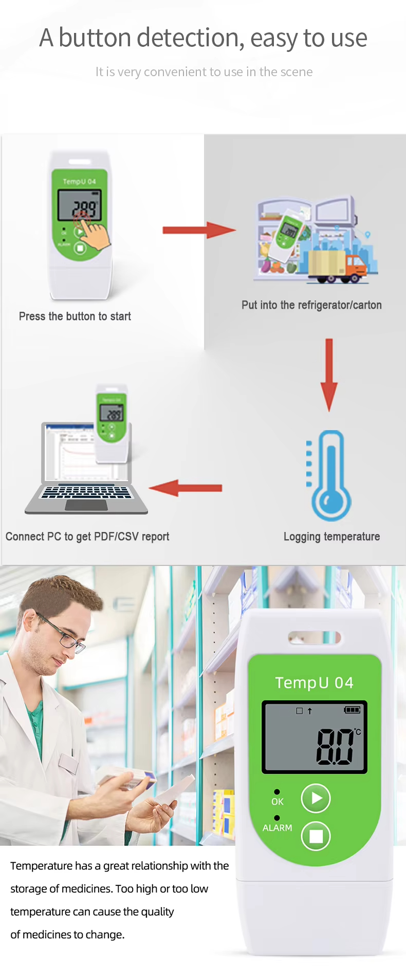 | Alarm Range | Optional, default: <2℃ or >8℃ |