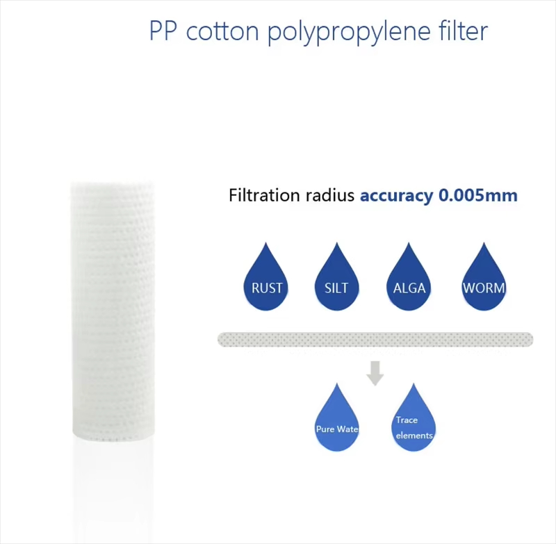 High quality PP cotton filter, can effectively remove water sediment, rust, algae, colloids and other large particle impurities, special process manufacturing, filtration protection is not wrong, high quality products using high-quality raw materials, food grade material, not easy to hair, with thread structure, high adsorption of water impurities.